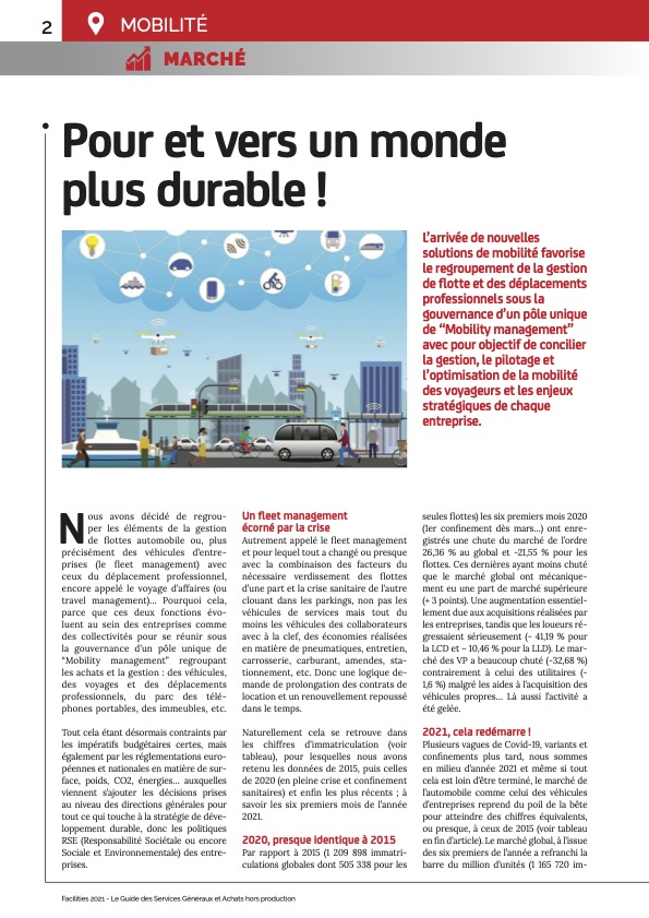 (Année 2022)L’arrivée de nouvelles solutions de mobilité favorise le regroupement de la gestion de flotte et des déplacements professionnels sous la gouvernance d’un pôle unique de “Mobility management” avec...