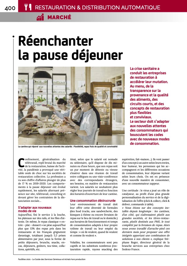 (Année 2022)La crise sanitaire a conduit les entreprises de restauration à accélérer leur mutation. Au menu, de la transparence sur la provenance et la qualité des aliments, des circuits courts, et des concepts de restauration plus flexibles...