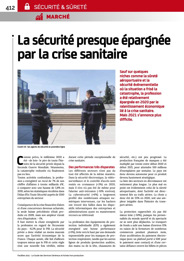 (Année 2022)Sauf sur quelques niches comme la sûreté aéroportuaire et la sécurité événementielle où la situation a frisé la catastrophe, la profession a été relativement épargnée en 2020 ...